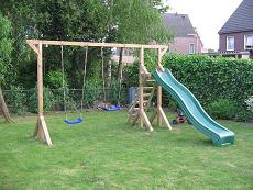 Glijbaan aanbouwDe kunststof glijbaan kan in de schommel geintegreed worden. Leverbaar in de kleuren geel, rood, groen, blauw.