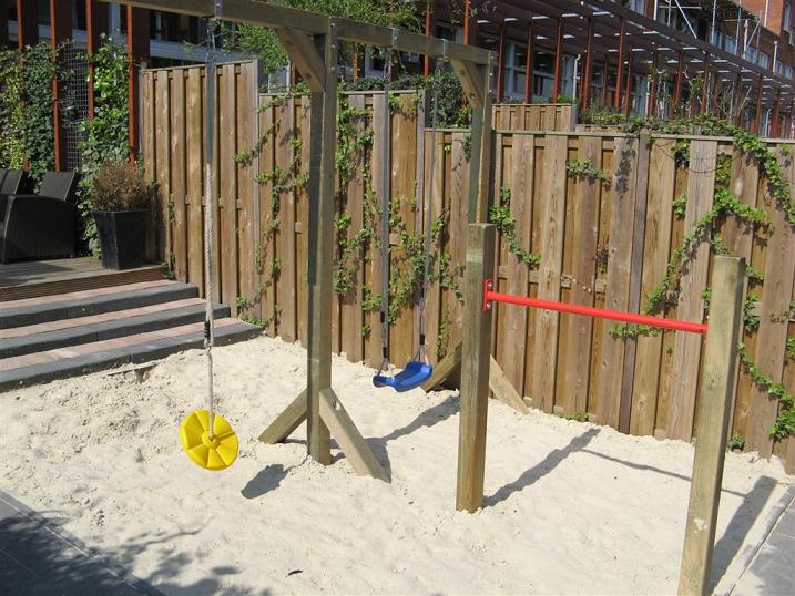Duikelstang schommelaanbouwDe duikelstangen kunnen ook in combinatie met de schommel geplaatst worden. |