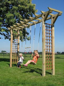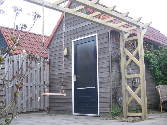 Onze schommels worden op maat gemaakt voor uw situatie. De hoogte van de ze schomel is 2,3 mtr. De maat voor de boven balk is minimaal 2 mtr en maximaal 4 mtr. Er zijn Diverse standaard breedte maten. In dien gewenst kan de schommel ook op maat gemaakt worden. De benodigde ruimte voor de schommel zwaai is ca 2,5 mtr voor en achter de paal.